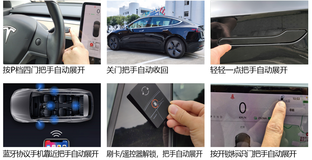 1. )车主携带蓝牙连接汽车的手机靠近车门,把手自动展开。